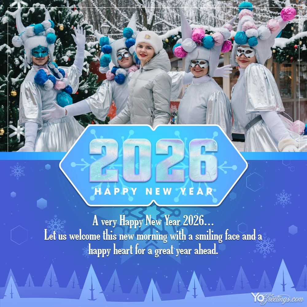 Share the New Year spirit and joy this New Year 2026 with these beautiful cards! Colorful Sparkling New Year 2026 Greeting Cards & Wishes. Happy new year 2026 images with photo frames and wishes is a special way to make amazing happy new year images. Browse our special collection of New Year 2026 Greeting Cards and personalize a message and photo to send holiday greeting cards to your family and friends!