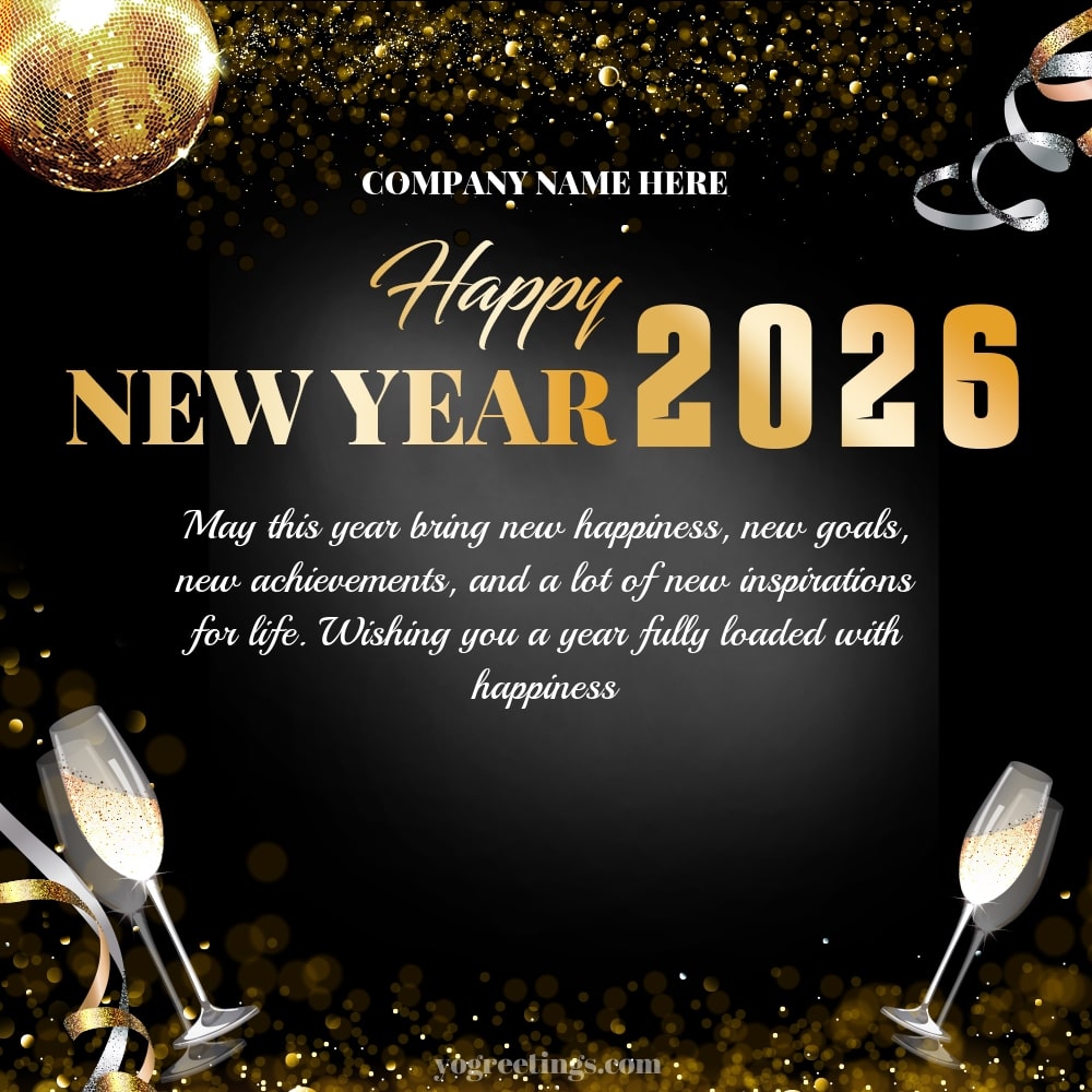 If you are confused about writing a new year message for your business partner, check out the maker of luxurious 2026 New Year greeting cards with company name and wishes, company information. Wish your customers this new year 2026, connect with your partner on the new year to show professionalism in how to maintain relationships with customers. Free professional new year 2026 greeting card maker.