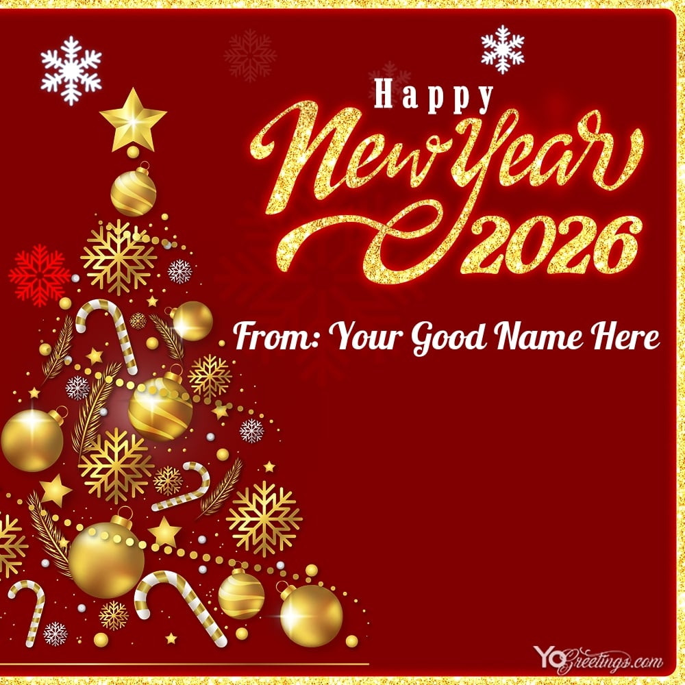 Celebrate the New Year 2026 with the new year greeting card maker with my name edit. Start this new year 2026 with your friends and family and send them our awesome new year greeting cards that will be designed by you. Send your best wishes, blessings of happiness, peace and joy. New Year 2026 greeting card with anyone's name, it would be great if your relatives received this gift on New Year.