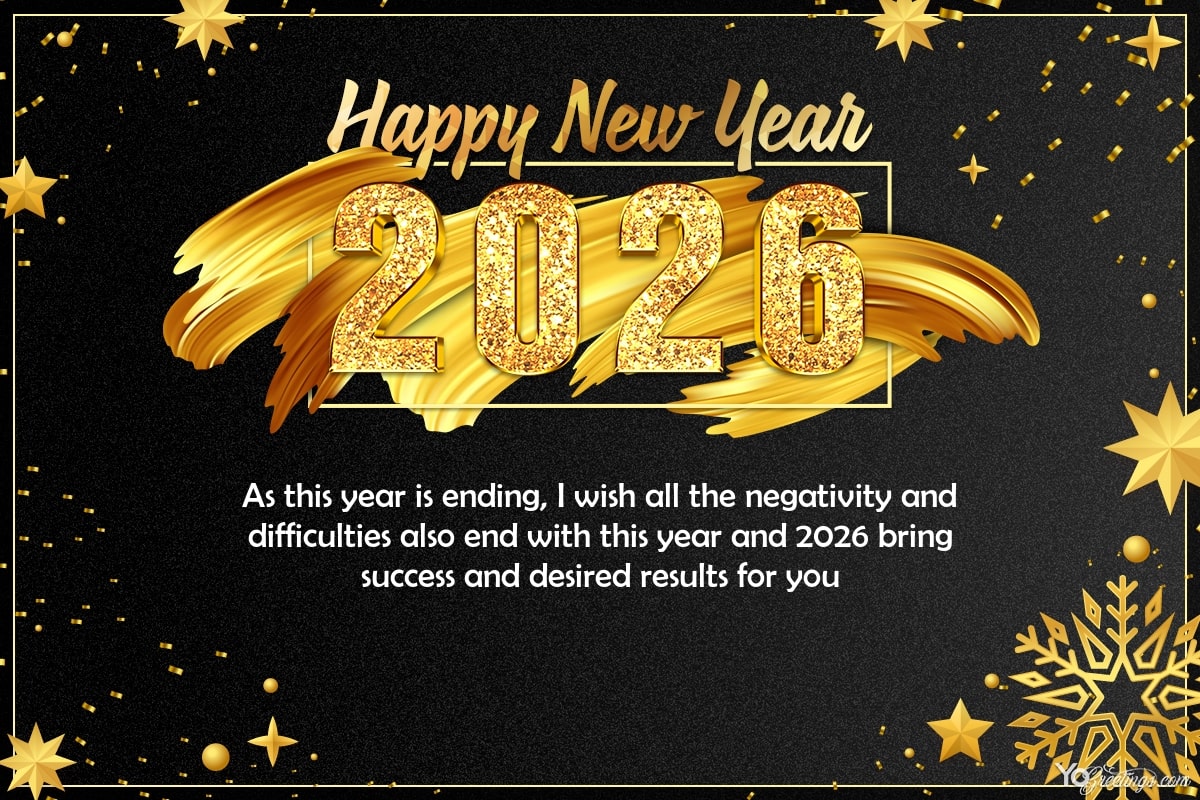 Make a luxurious 2026 New Year greeting card on a golden background. Happy New Year 2026 images with name or wishes. Surprise your family and friends with the best Happy New Year 2026 cards by writing wishes or names on this happy new year images and send them through social networks. The best 2026 New Year greeting cards always surprise someone close to us even if it is sent via social networks.