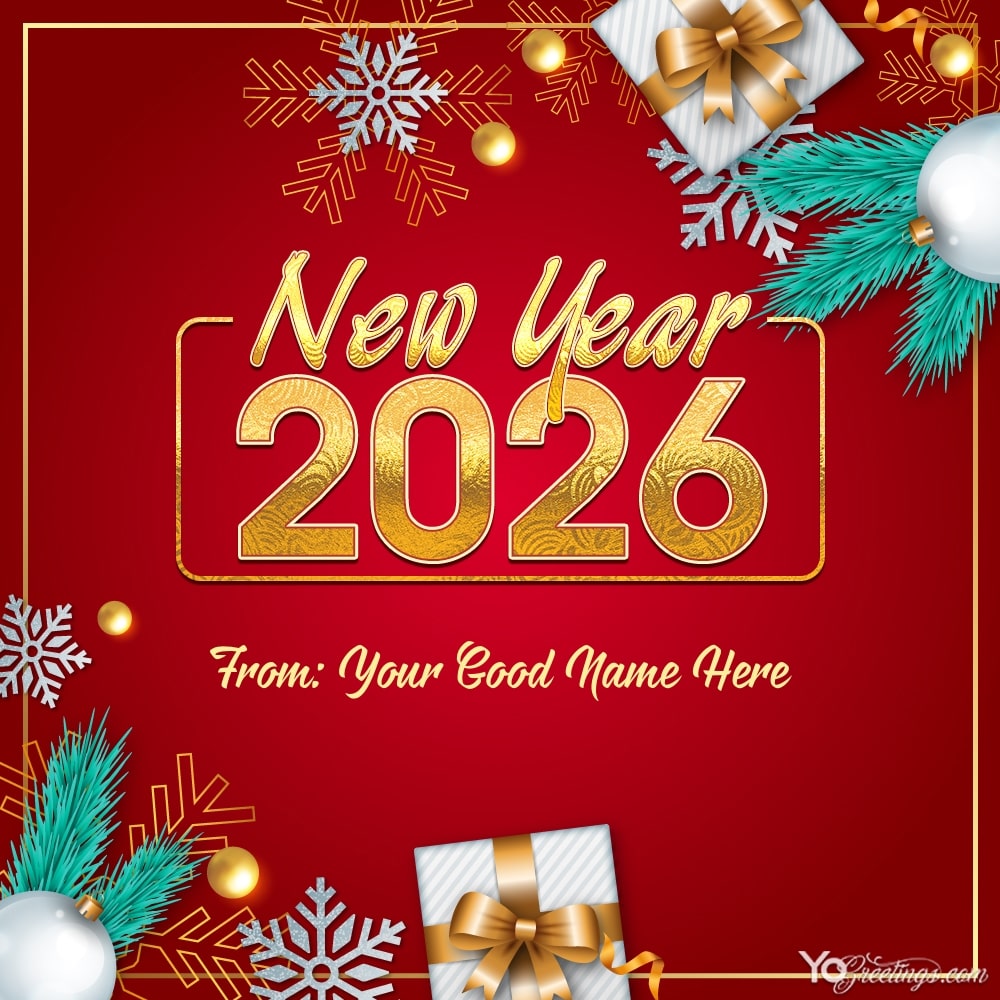 Edit photos of New Year 2026 greeting cards with anyone's name and send to your friends, loved ones. Create new year greeting cards 2026 online, new year 2026 cards with name editing from Yogreetings easily edit. Share your new year feelings with everyone with personalized new year greeting cards.